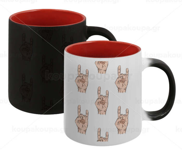 Rock hands, Κούπα Μαγική εσωτερικό κόκκινο, κεραμική, 330ml που αλλάζει χρώμα με το ζεστό ρόφημα