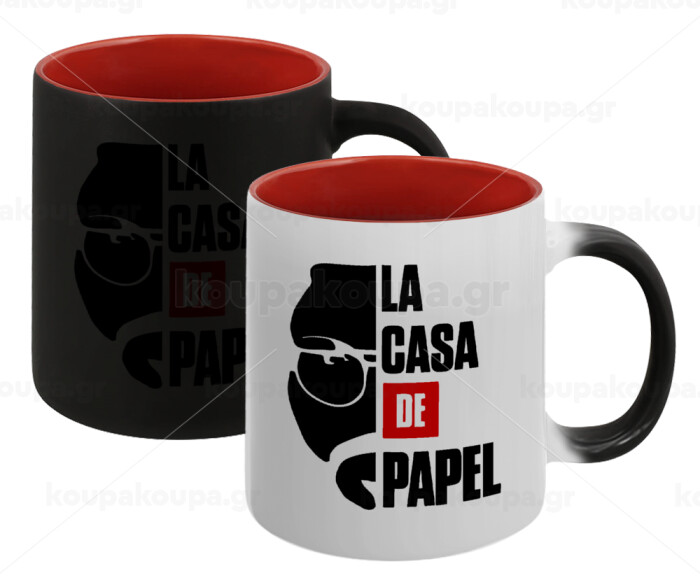 La casa de papel, Κούπα Μαγική εσωτερικό κόκκινο, κεραμική, 330ml που αλλάζει χρώμα με το ζεστό ρόφημα