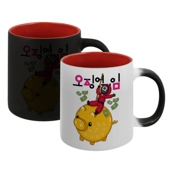 Squid game money pig, Κούπα Μαγική εσωτερικό κόκκινο, κεραμική, 330ml που αλλάζει χρώμα με το ζεστό ρόφημα