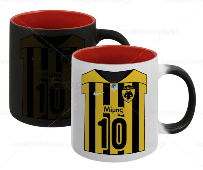 ΑΕΚ εμφάνιση, Κούπα Μαγική εσωτερικό κόκκινο, κεραμική, 330ml που αλλάζει χρώμα με το ζεστό ρόφημα