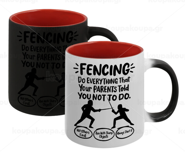 Fencing, do everything that your parents told you not to do., Κούπα Μαγική εσωτερικό κόκκινο, κεραμική, 330ml που αλλάζει χρώμα με το ζεστό ρόφημα