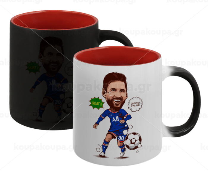 Lionel Messi drawing, Κούπα Μαγική εσωτερικό κόκκινο, κεραμική, 330ml που αλλάζει χρώμα με το ζεστό ρόφημα
