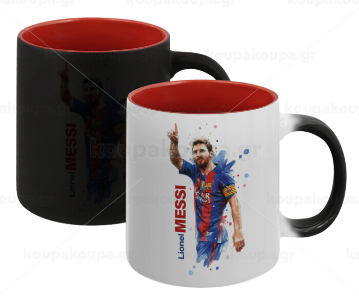 Λιονέλ Μέσι, Κούπα Μαγική εσωτερικό κόκκινο, κεραμική, 330ml που αλλάζει χρώμα με το ζεστό ρόφημα