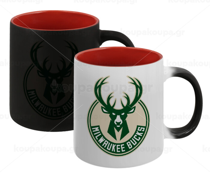Milwaukee bucks, Κούπα Μαγική εσωτερικό κόκκινο, κεραμική, 330ml που αλλάζει χρώμα με το ζεστό ρόφημα