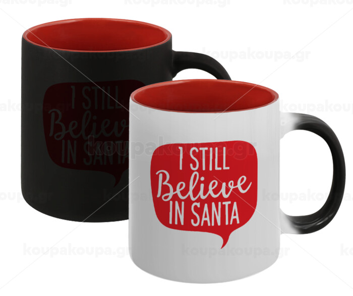 Ι still believe in santa, Κούπα Μαγική εσωτερικό κόκκινο, κεραμική, 330ml που αλλάζει χρώμα με το ζεστό ρόφημα