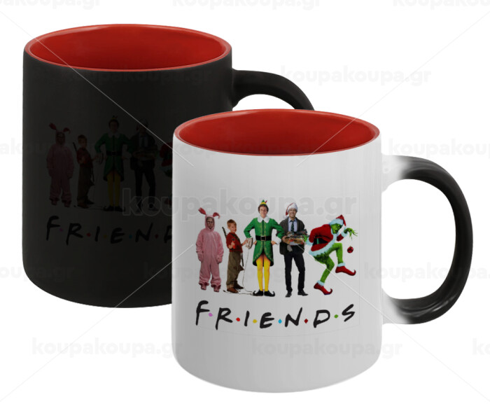 Christmas FRIENDS, Κούπα Μαγική εσωτερικό κόκκινο, κεραμική, 330ml που αλλάζει χρώμα με το ζεστό ρόφημα
