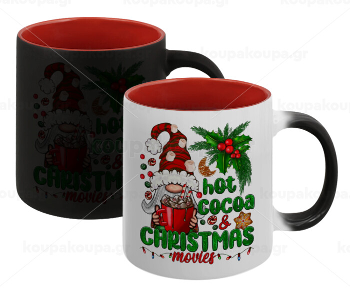 Hot cocoa and Christmas movies, Κούπα Μαγική εσωτερικό κόκκινο, κεραμική, 330ml που αλλάζει χρώμα με το ζεστό ρόφημα