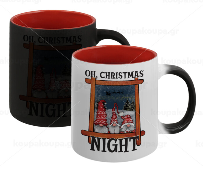Oh Christmas Night, Κούπα Μαγική εσωτερικό κόκκινο, κεραμική, 330ml που αλλάζει χρώμα με το ζεστό ρόφημα