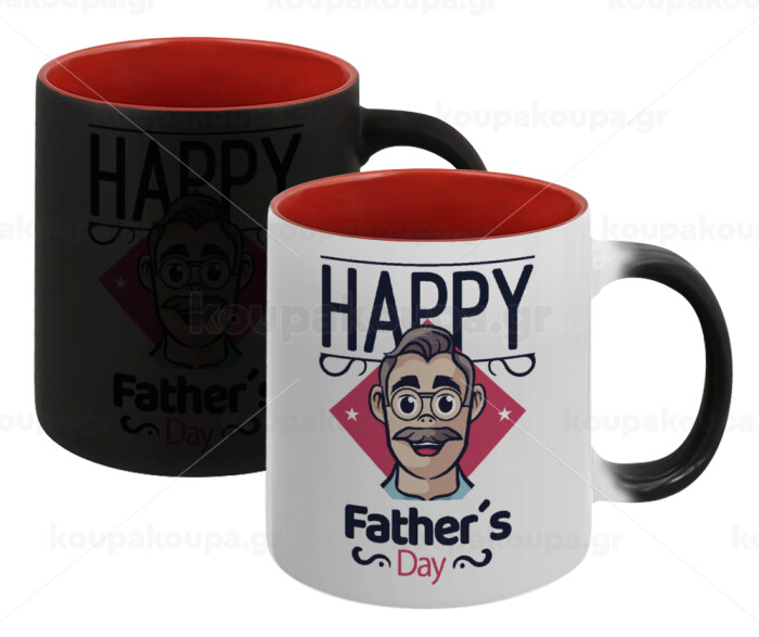 Για την γιορτή του μπαμπά!, Κούπα Μαγική εσωτερικό κόκκινο, κεραμική, 330ml που αλλάζει χρώμα με το ζεστό ρόφημα
