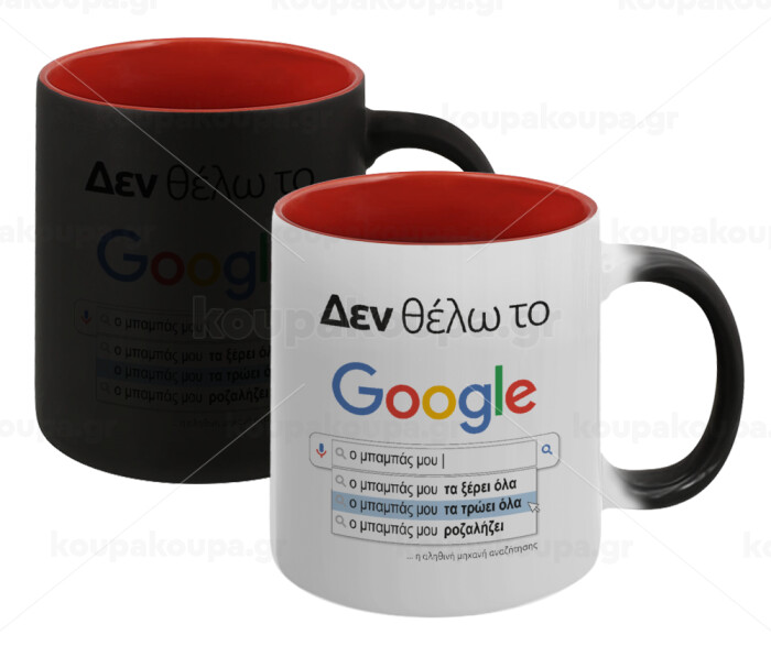 Δεν θέλω το Google, ο μπαμπάς μου..., Κούπα Μαγική εσωτερικό κόκκινο, κεραμική, 330ml που αλλάζει χρώμα με το ζεστό ρόφημα
