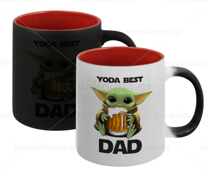 Yoda Best Dad, Κούπα Μαγική εσωτερικό κόκκινο, κεραμική, 330ml που αλλάζει χρώμα με το ζεστό ρόφημα