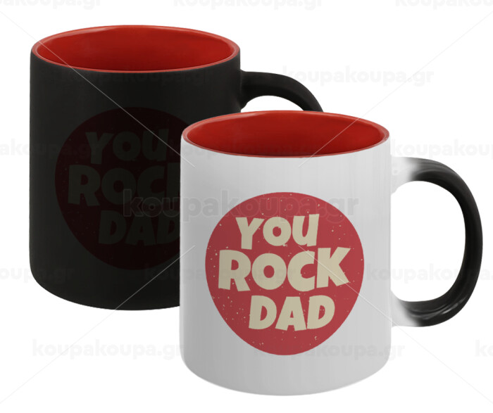 YOU ROCK DAD, Κούπα Μαγική εσωτερικό κόκκινο, κεραμική, 330ml που αλλάζει χρώμα με το ζεστό ρόφημα