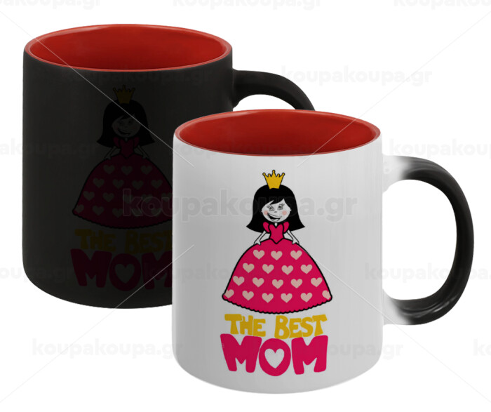 The Best Mom Queen, Κούπα Μαγική εσωτερικό κόκκινο, κεραμική, 330ml που αλλάζει χρώμα με το ζεστό ρόφημα