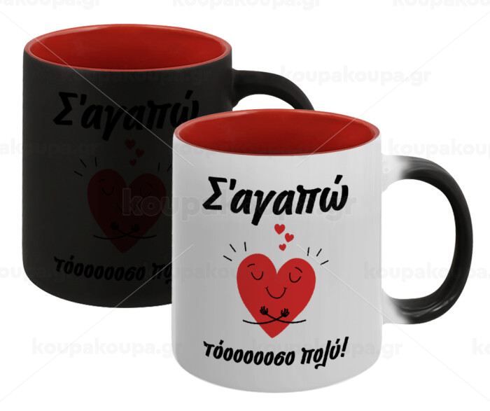 Σ΄αγαπώ τόοοοσο πολύ καρδιά, Κούπα Μαγική εσωτερικό κόκκινο, κεραμική, 330ml που αλλάζει χρώμα με το ζεστό ρόφημα