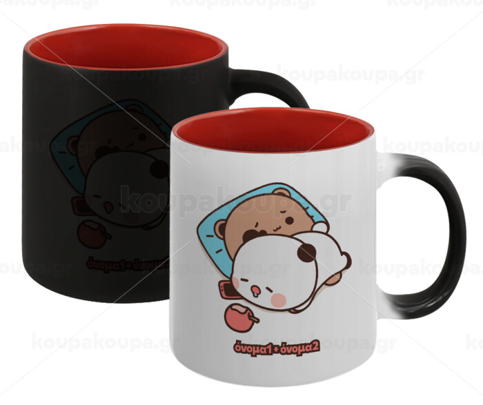 bubu + dudu, Κούπα Μαγική εσωτερικό κόκκινο, κεραμική, 330ml που αλλάζει χρώμα με το ζεστό ρόφημα