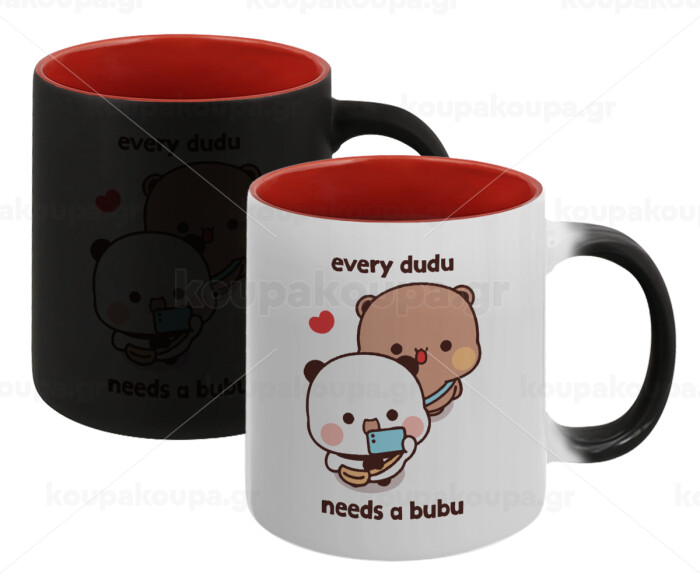 Every Dudu needs a bubu, Κούπα Μαγική εσωτερικό κόκκινο, κεραμική, 330ml που αλλάζει χρώμα με το ζεστό ρόφημα
