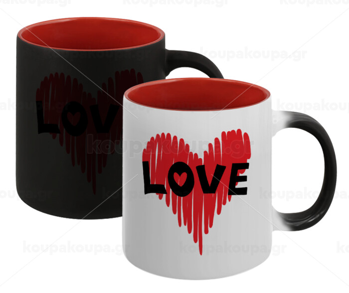 I Love You red heart, Κούπα Μαγική εσωτερικό κόκκινο, κεραμική, 330ml που αλλάζει χρώμα με το ζεστό ρόφημα