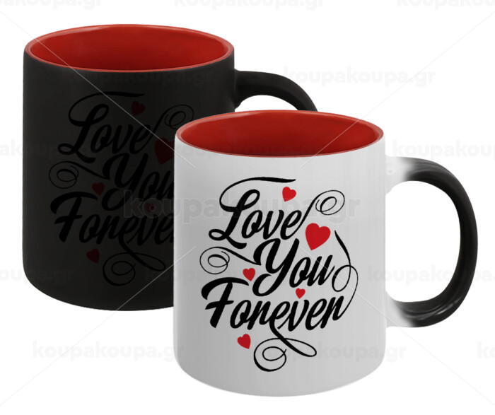 Love you forever, Κούπα Μαγική εσωτερικό κόκκινο, κεραμική, 330ml που αλλάζει χρώμα με το ζεστό ρόφημα