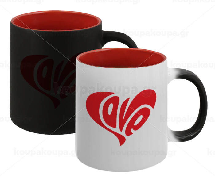 Love, Κούπα Μαγική εσωτερικό κόκκινο, κεραμική, 330ml που αλλάζει χρώμα με το ζεστό ρόφημα
