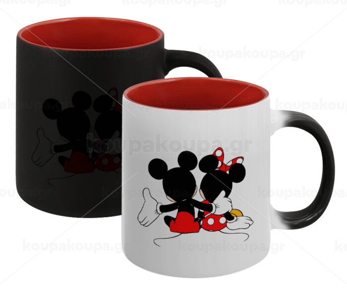 mickey and minnie hags, Κούπα Μαγική εσωτερικό κόκκινο, κεραμική, 330ml που αλλάζει χρώμα με το ζεστό ρόφημα