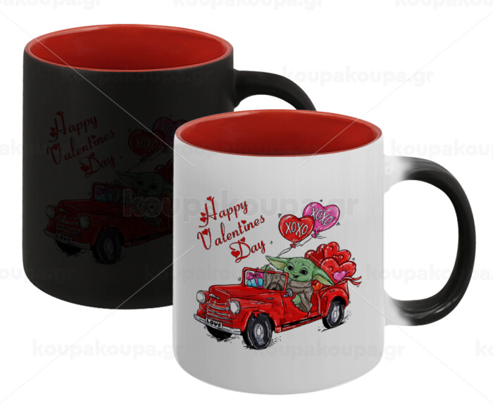 Yoda, happy valentines day (xoxo), Κούπα Μαγική εσωτερικό κόκκινο, κεραμική, 330ml που αλλάζει χρώμα με το ζεστό ρόφημα