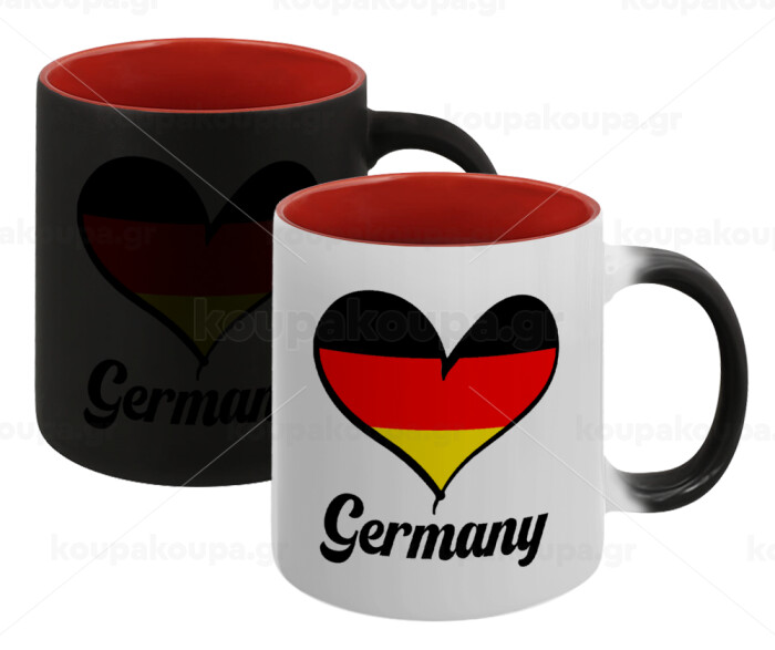 Germany flag, Κούπα Μαγική εσωτερικό κόκκινο, κεραμική, 330ml που αλλάζει χρώμα με το ζεστό ρόφημα
