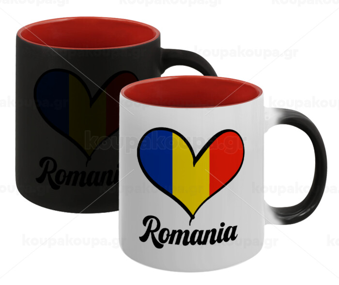 Romania flag, Κούπα Μαγική εσωτερικό κόκκινο, κεραμική, 330ml που αλλάζει χρώμα με το ζεστό ρόφημα
