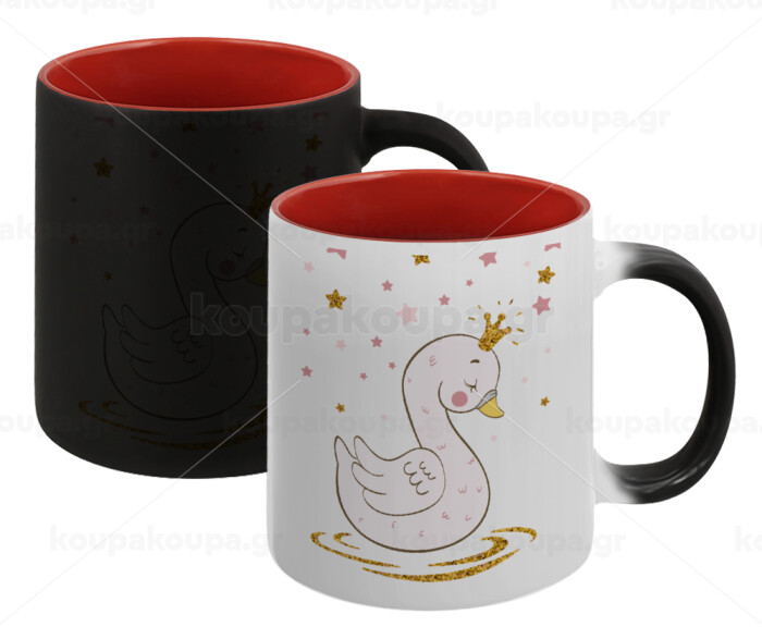 Κύκνος με στέμα, Κούπα Μαγική εσωτερικό κόκκινο, κεραμική, 330ml που αλλάζει χρώμα με το ζεστό ρόφημα