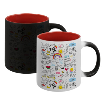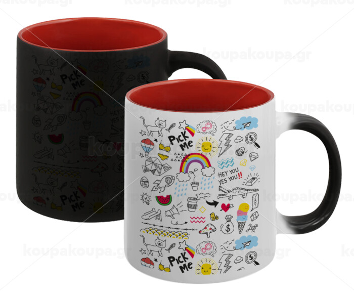 Doodle kids, Κούπα Μαγική εσωτερικό κόκκινο, κεραμική, 330ml που αλλάζει χρώμα με το ζεστό ρόφημα