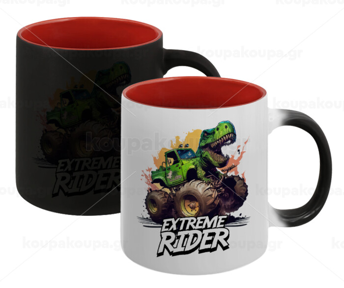 Extreme rider Dyno, Κούπα Μαγική εσωτερικό κόκκινο, κεραμική, 330ml που αλλάζει χρώμα με το ζεστό ρόφημα