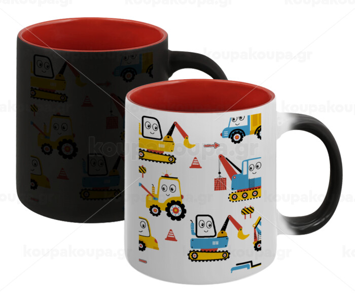 Hand drawing building truck, Κούπα Μαγική εσωτερικό κόκκινο, κεραμική, 330ml που αλλάζει χρώμα με το ζεστό ρόφημα