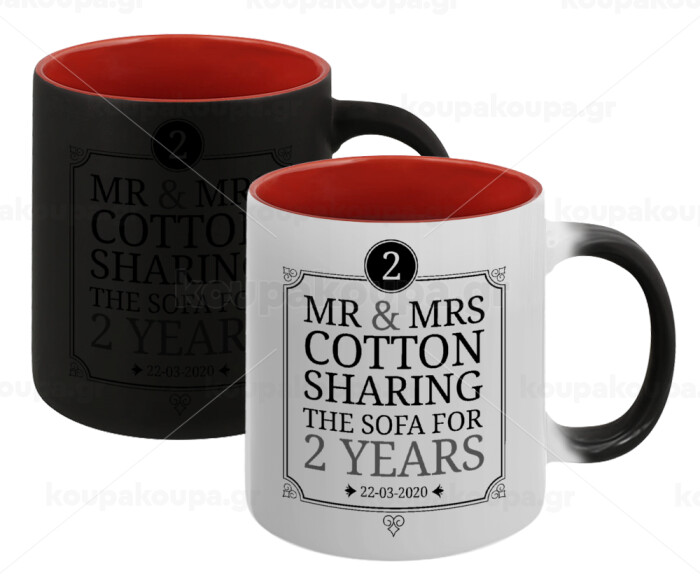 Mr & Mrs Sharing the sofa, Κούπα Μαγική εσωτερικό κόκκινο, κεραμική, 330ml που αλλάζει χρώμα με το ζεστό ρόφημα