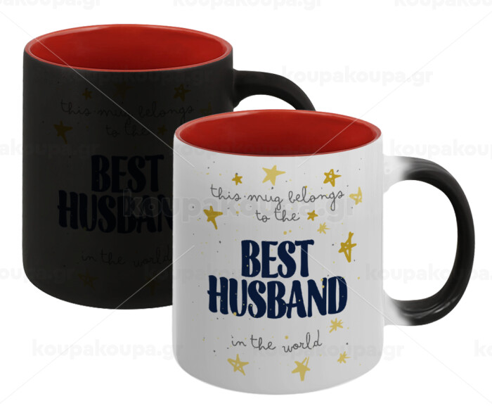 This mug belongs to the BEST HUSBAND in the world!, Κούπα Μαγική εσωτερικό κόκκινο, κεραμική, 330ml που αλλάζει χρώμα με το ζεστό ρόφημα