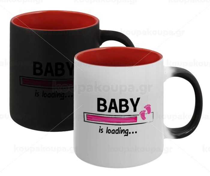 Baby is Loading GIRL, Κούπα Μαγική εσωτερικό κόκκινο, κεραμική, 330ml που αλλάζει χρώμα με το ζεστό ρόφημα