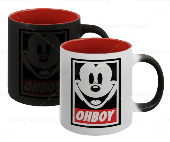Oh boy μίκυ, Κούπα Μαγική εσωτερικό κόκκινο, κεραμική, 330ml που αλλάζει χρώμα με το ζεστό ρόφημα