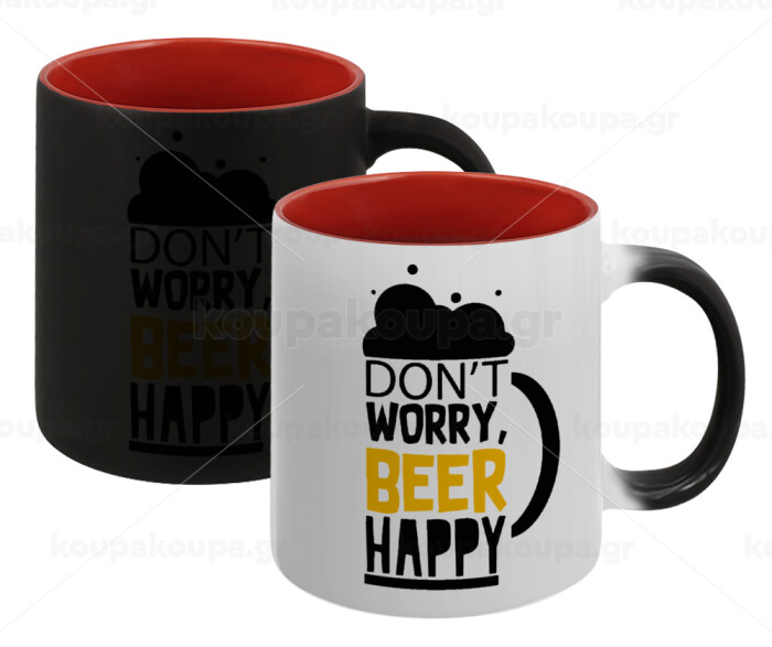 Don't worry BEER Happy, Κούπα Μαγική εσωτερικό κόκκινο, κεραμική, 330ml που αλλάζει χρώμα με το ζεστό ρόφημα