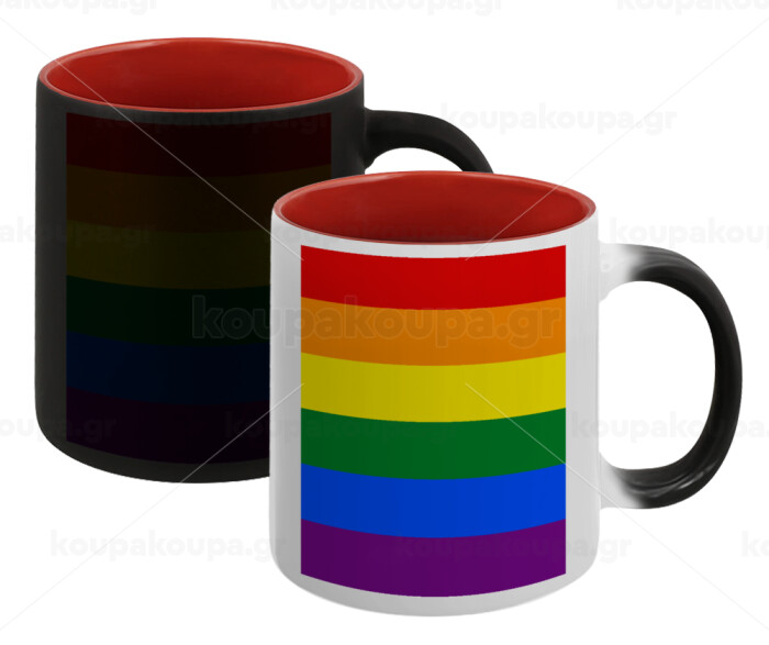 Rainbow flag (LGBT) , Κούπα Μαγική εσωτερικό κόκκινο, κεραμική, 330ml που αλλάζει χρώμα με το ζεστό ρόφημα