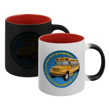 Στον αγαπημένο μου οδηγό σχολικού!, Κούπα Μαγική εσωτερικό κόκκινο, κεραμική, 330ml που αλλάζει χρώμα με το ζεστό ρόφημα