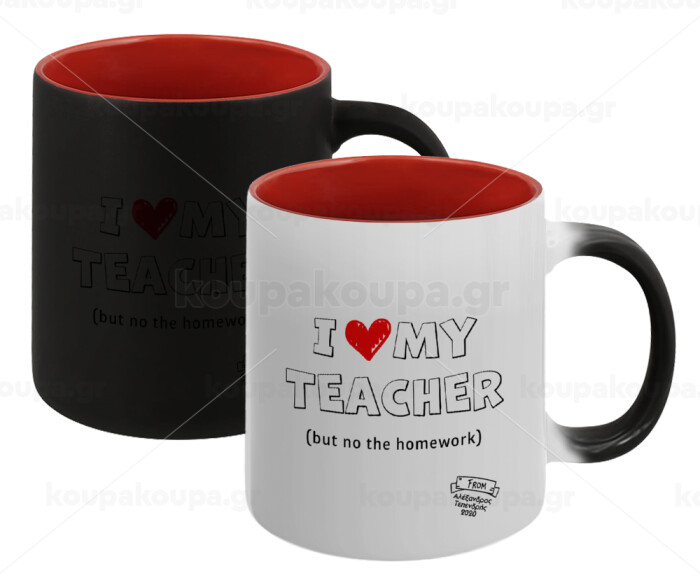 i love my teacher but no the homework outline, Κούπα Μαγική εσωτερικό κόκκινο, κεραμική, 330ml που αλλάζει χρώμα με το ζεστό ρόφημα