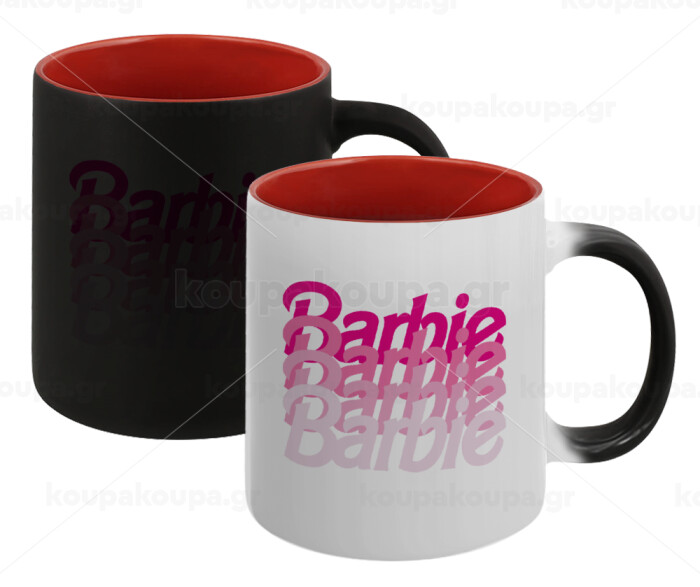 Barbie repeat, Κούπα Μαγική εσωτερικό κόκκινο, κεραμική, 330ml που αλλάζει χρώμα με το ζεστό ρόφημα