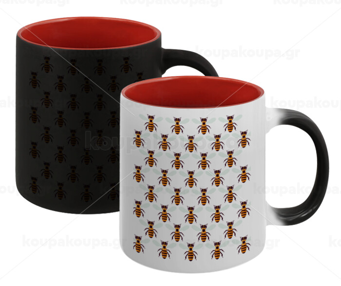 Μελισσούλες, Κούπα Μαγική εσωτερικό κόκκινο, κεραμική, 330ml που αλλάζει χρώμα με το ζεστό ρόφημα