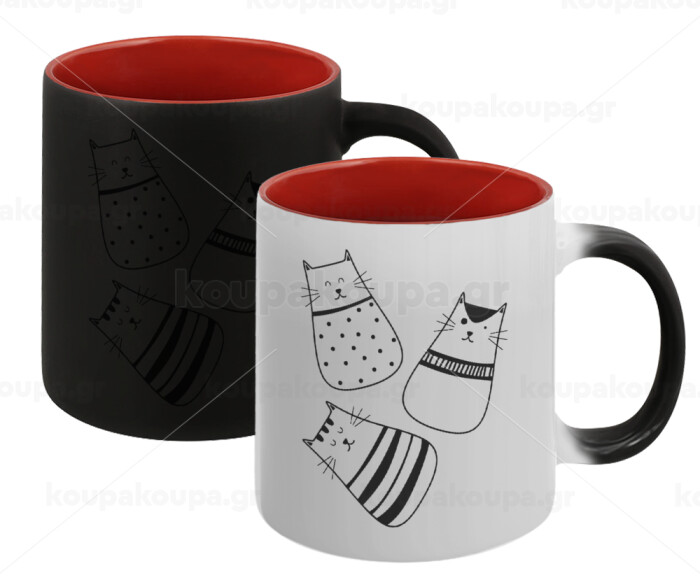 Cute cats, Κούπα Μαγική εσωτερικό κόκκινο, κεραμική, 330ml που αλλάζει χρώμα με το ζεστό ρόφημα
