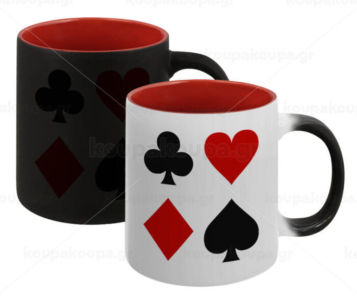 Τραπουλόχαρτα, Κούπα Μαγική εσωτερικό κόκκινο, κεραμική, 330ml που αλλάζει χρώμα με το ζεστό ρόφημα