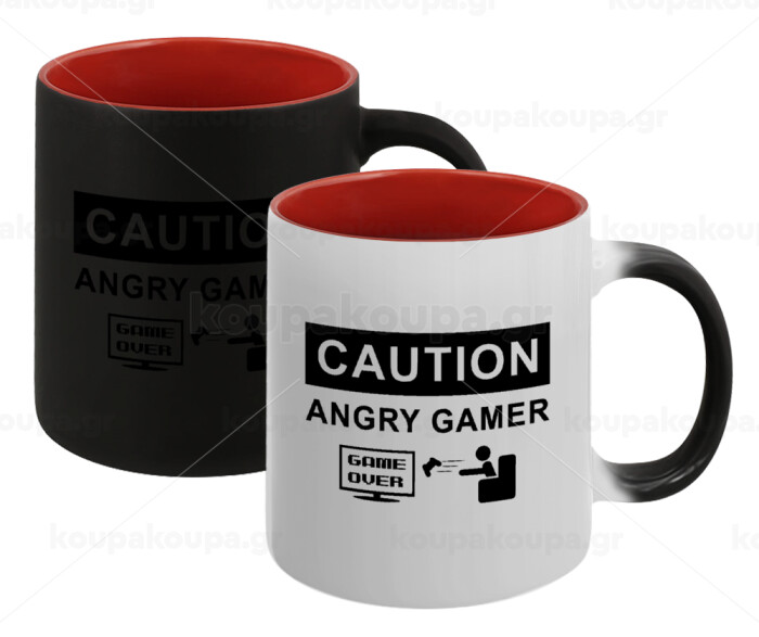 Caution, angry gamer!, Κούπα Μαγική εσωτερικό κόκκινο, κεραμική, 330ml που αλλάζει χρώμα με το ζεστό ρόφημα