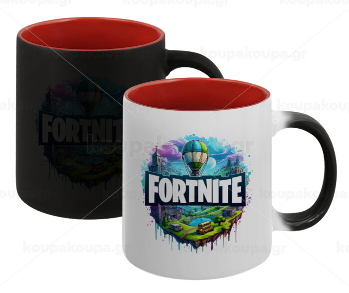 Fortnite land, Κούπα Μαγική εσωτερικό κόκκινο, κεραμική, 330ml που αλλάζει χρώμα με το ζεστό ρόφημα