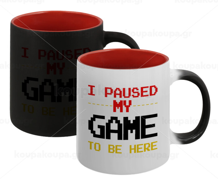 I paused my game to be here, Κούπα Μαγική εσωτερικό κόκκινο, κεραμική, 330ml που αλλάζει χρώμα με το ζεστό ρόφημα