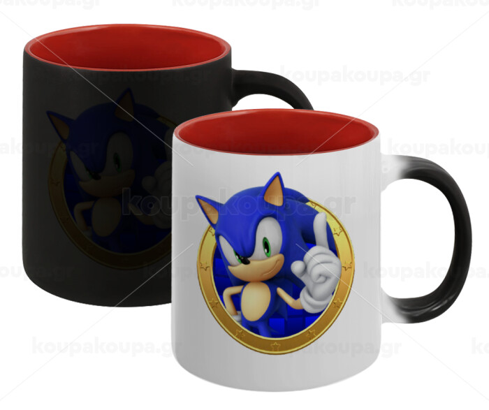 Sonic the hedgehog, Κούπα Μαγική εσωτερικό κόκκινο, κεραμική, 330ml που αλλάζει χρώμα με το ζεστό ρόφημα