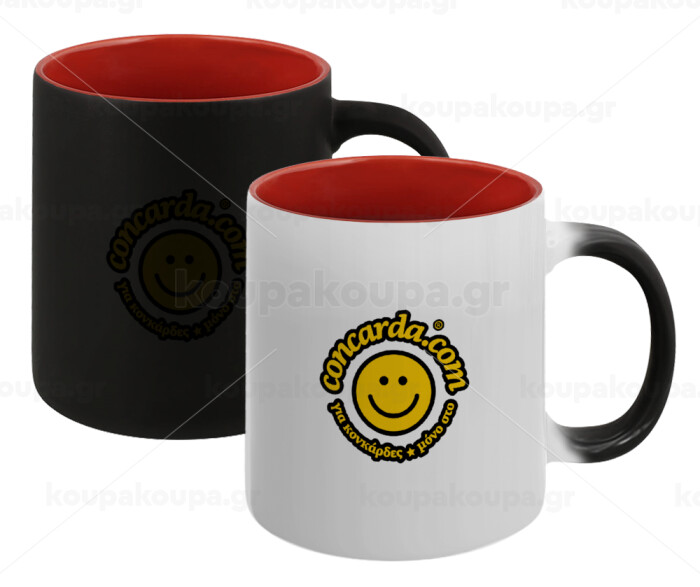 Concarda, Κούπα Μαγική εσωτερικό κόκκινο, κεραμική, 330ml που αλλάζει χρώμα με το ζεστό ρόφημα