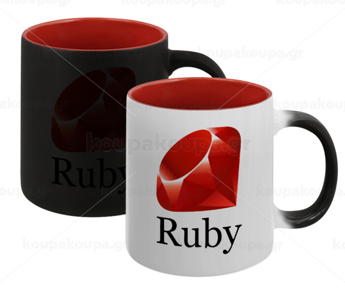 Ruby, Κούπα Μαγική εσωτερικό κόκκινο, κεραμική, 330ml που αλλάζει χρώμα με το ζεστό ρόφημα