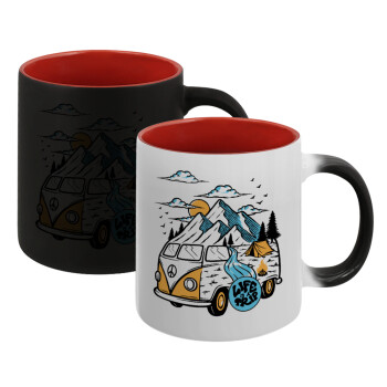 Life is a trip, Κούπα Μαγική εσωτερικό κόκκινο, κεραμική, 330ml που αλλάζει χρώμα με το ζεστό ρόφημα